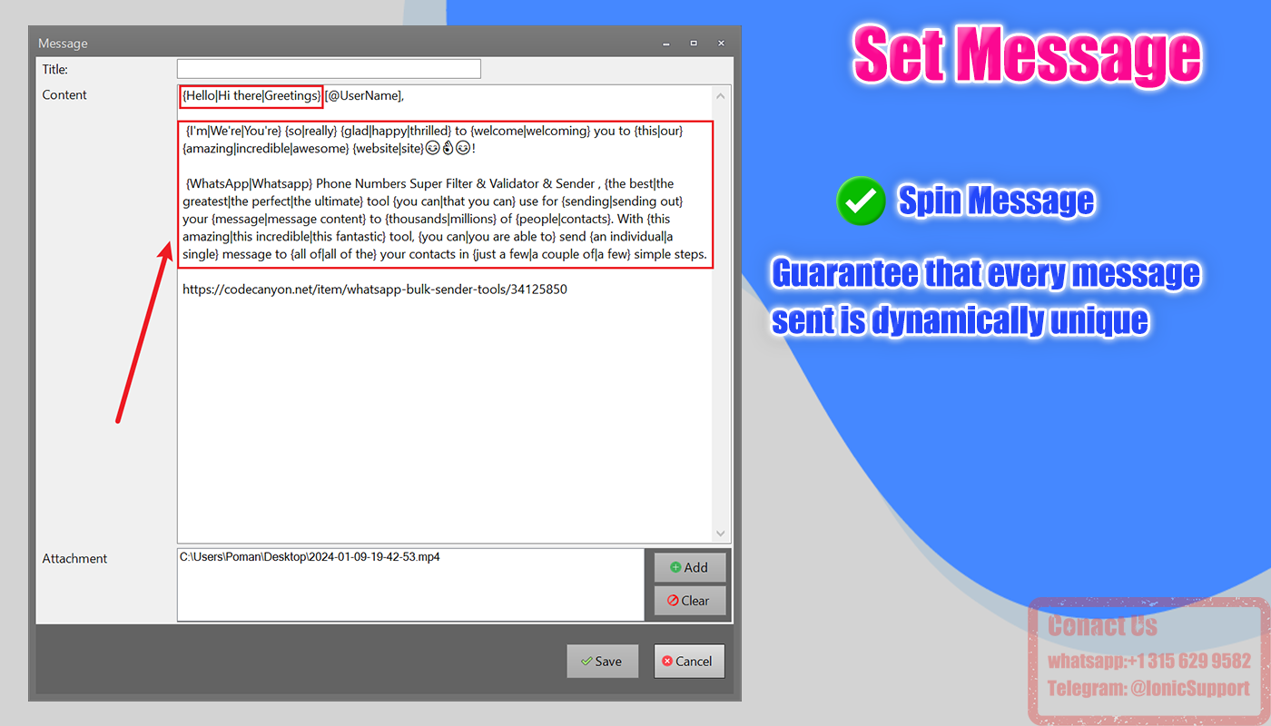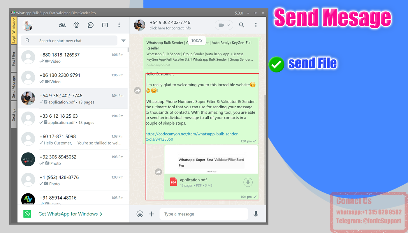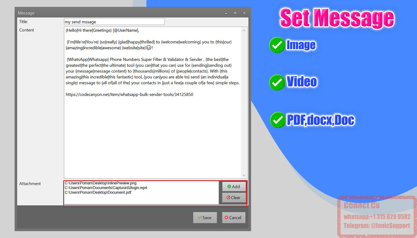 ✅Our tool help you send bulk messages to your contacts(Support attachment:Image,Video,Pdf,Word)