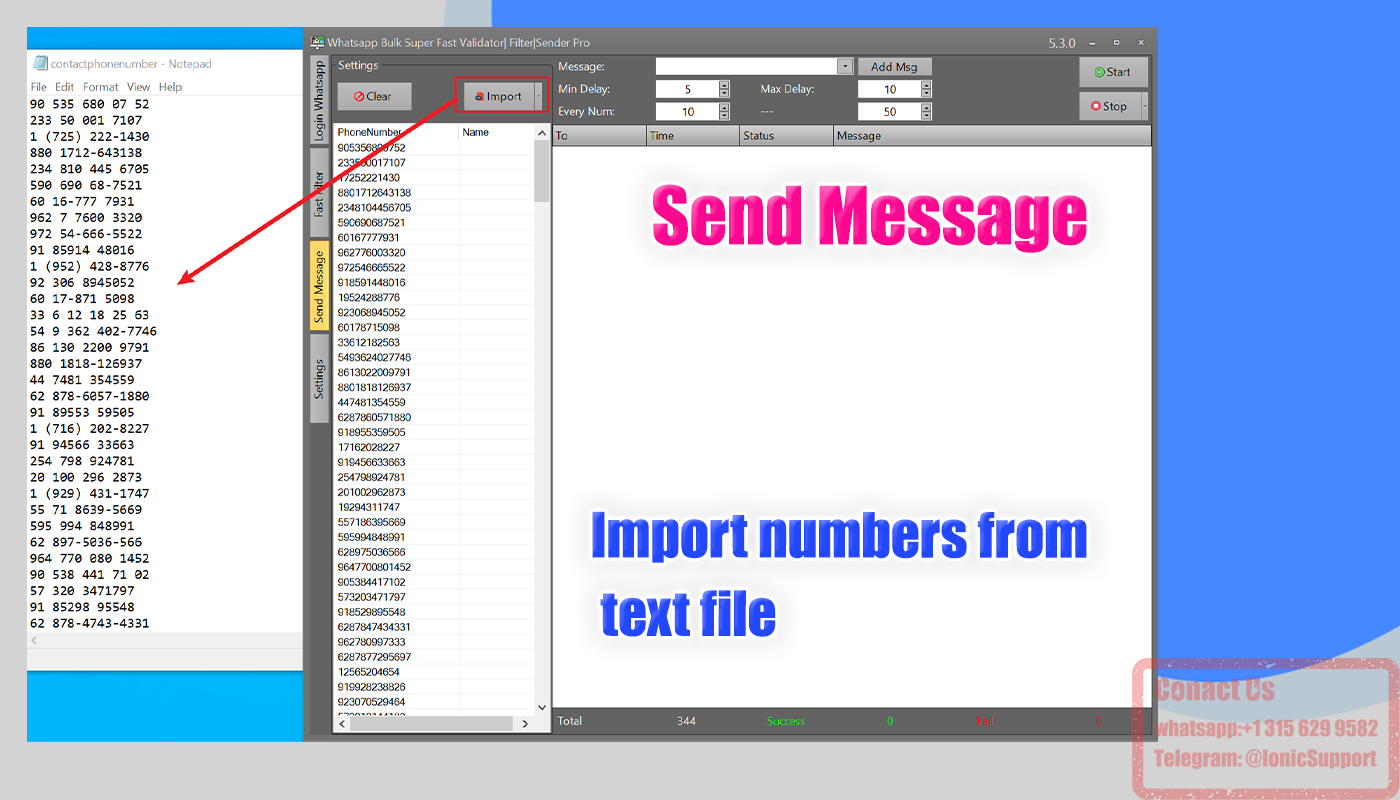 ✅Our solution allows you to load your list of contacts from a Text file, while automatically formatting your contact numbers