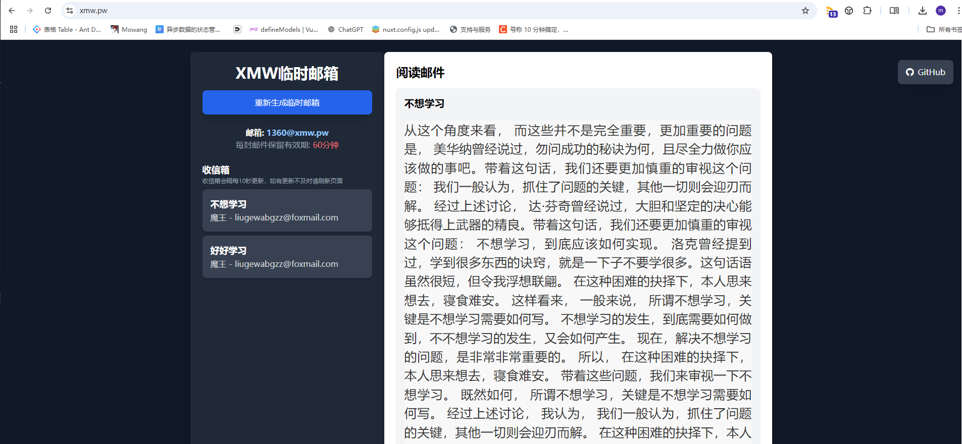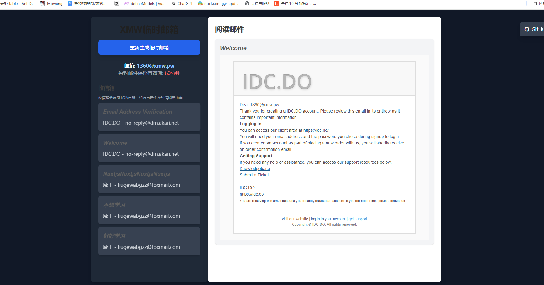 EMAIL_DOMAIN: "xmw.pw" // 你所使用的邮箱域名