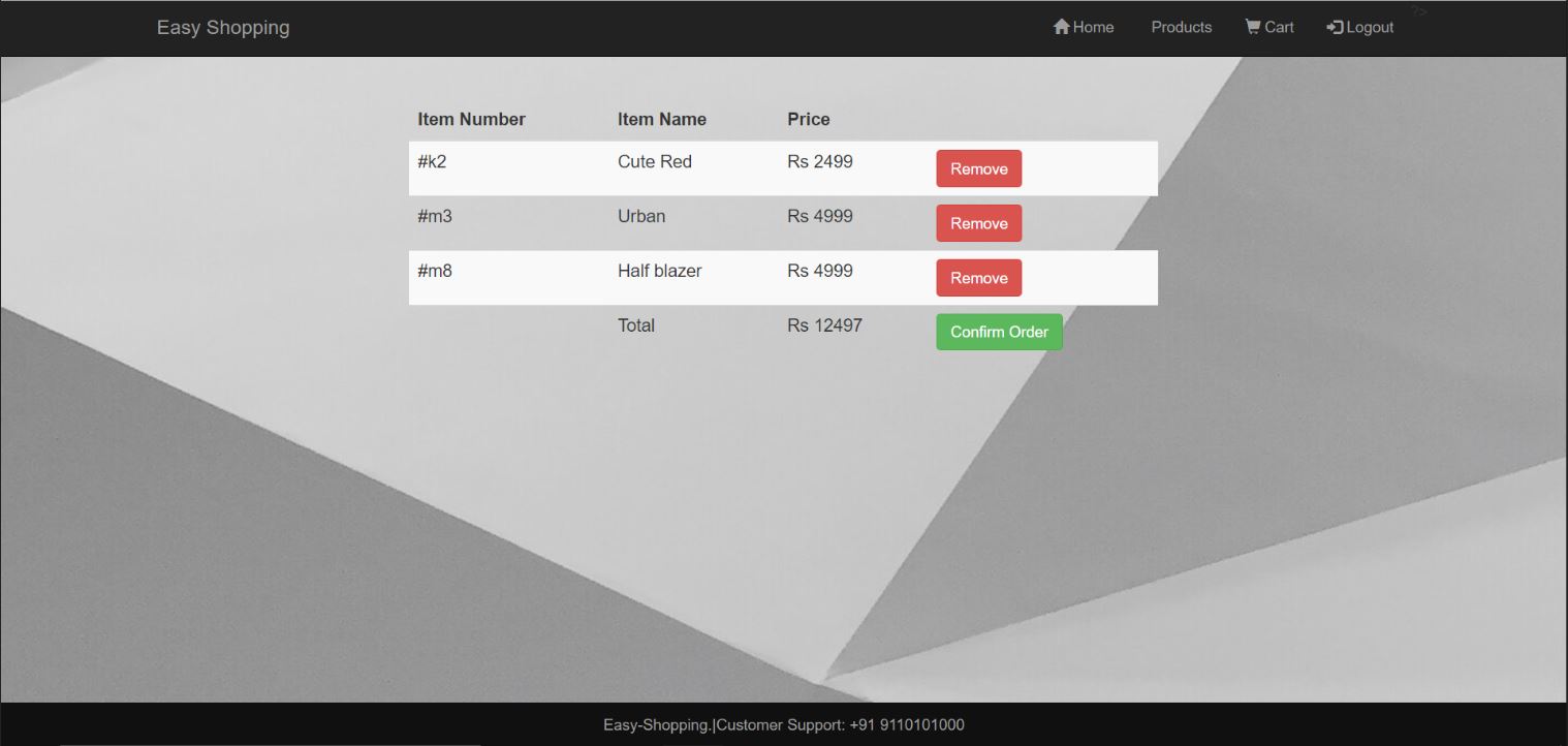 - They can also remove the products from their cart.