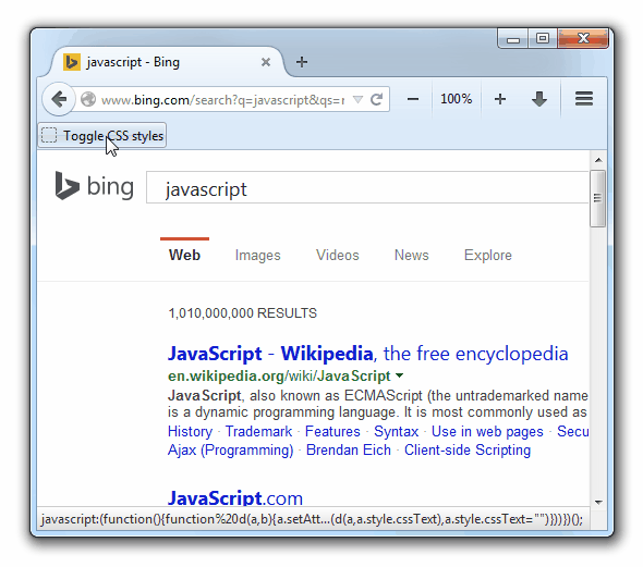 javascript:x=document.querySelectorAll('link,style,[style]');for(i=x.length;i--;)e=x[i],e.style.cssText?e.style.cssText='':e.outerHTML=''121characters