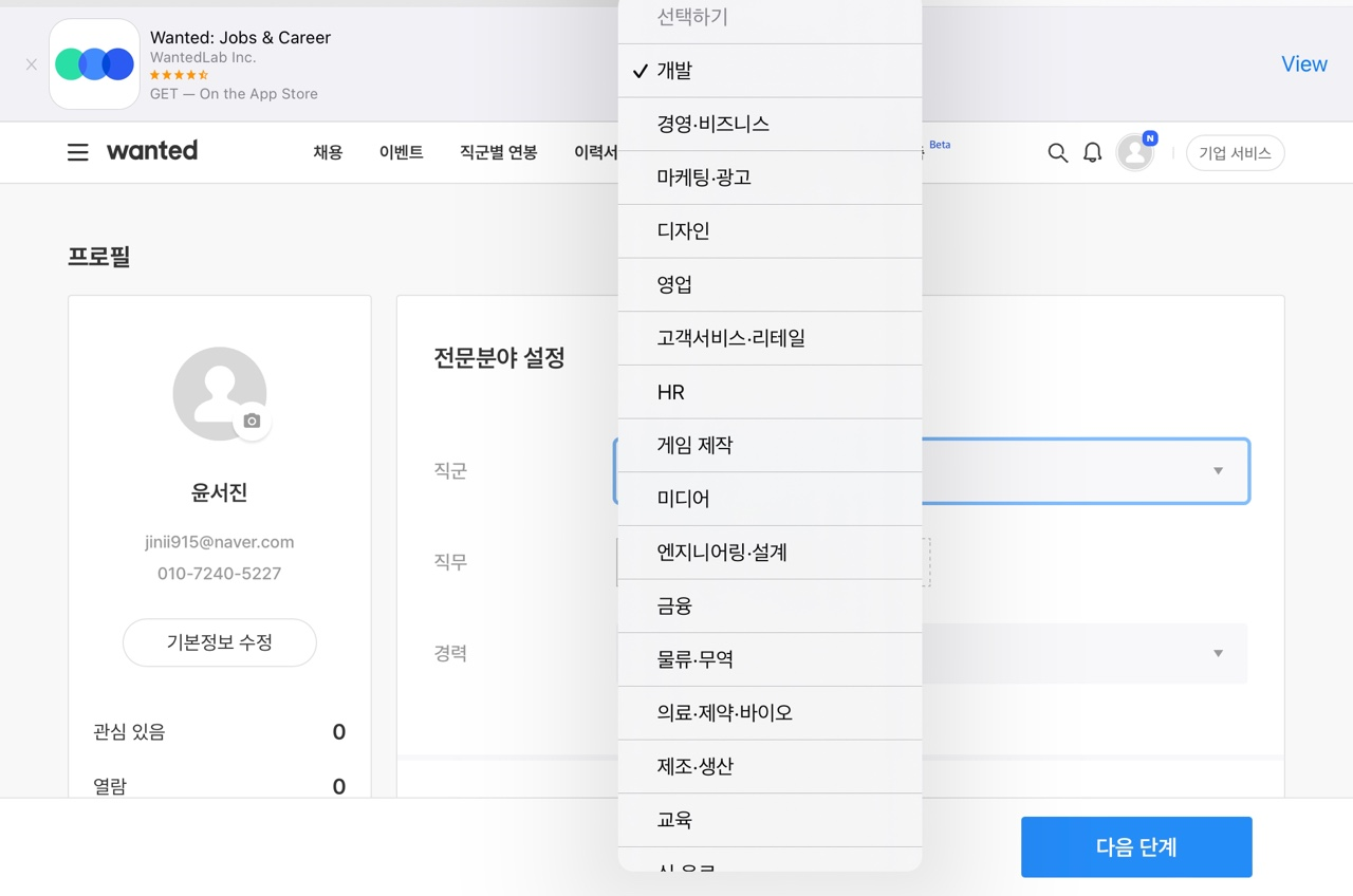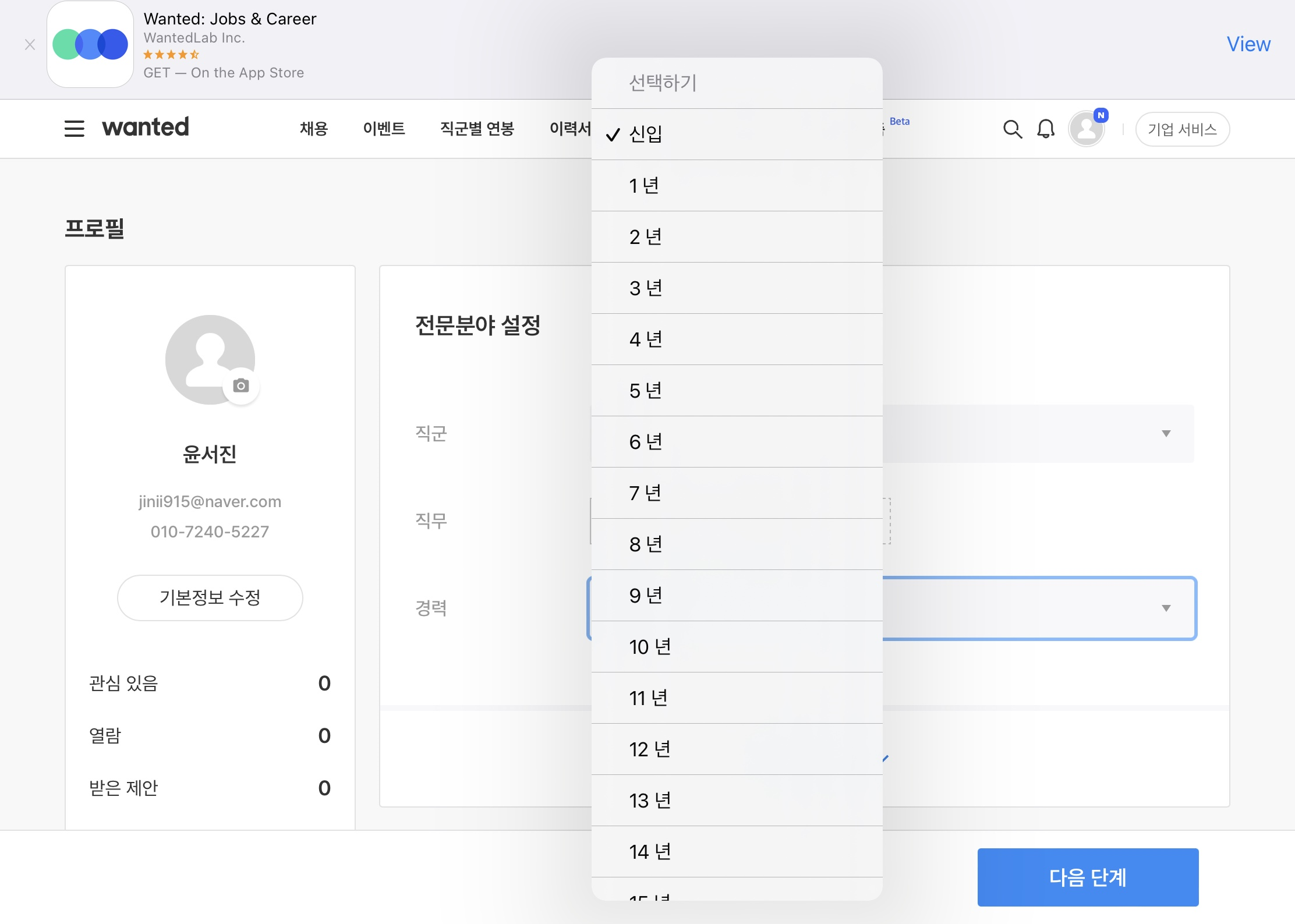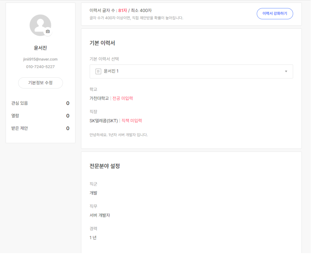 회원가입 후, '초기설정'과 '이력서' 부분 연결되어 있음 => 이력서 테이블 수정