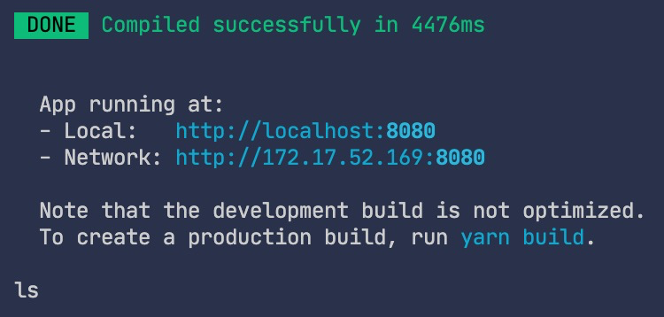 但是如果运行 npm run start &,以 & 结尾,把服务在后台启动,这个时候如果输入 ls 或者其他指令,可以看到控制台就有输出了。
