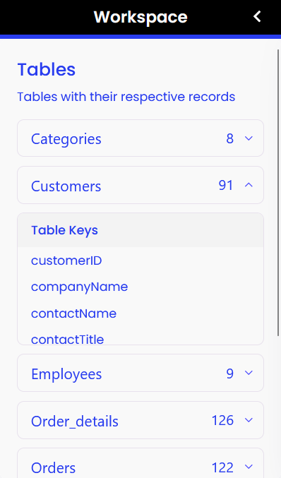 Preview feature to check all the keys of a particular table without actually querying for it. Useful for data analysts as they don't need to query the entire table just to check the keys the table has. Also potential to add some more metadata regarding type of key (string,number etc) which can add to the overall User Experience.