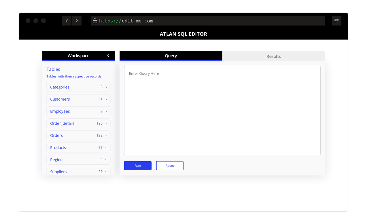 The app is hosted for the public at https://atlan-sql-editor-kapaman.netlify.app/