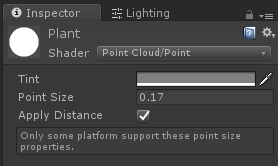 Points are rendered as small disks when using the Point Cloud/Disk shader or