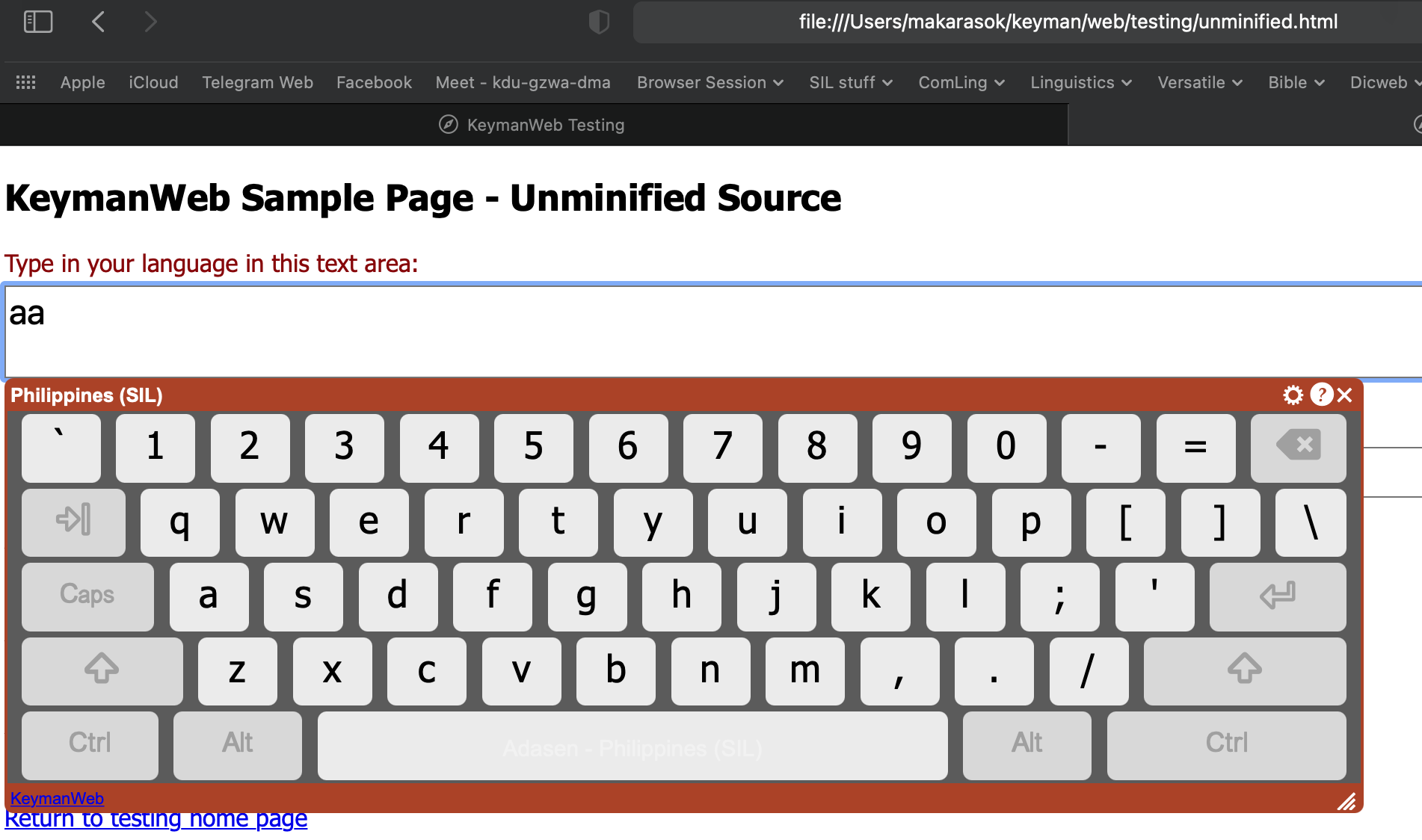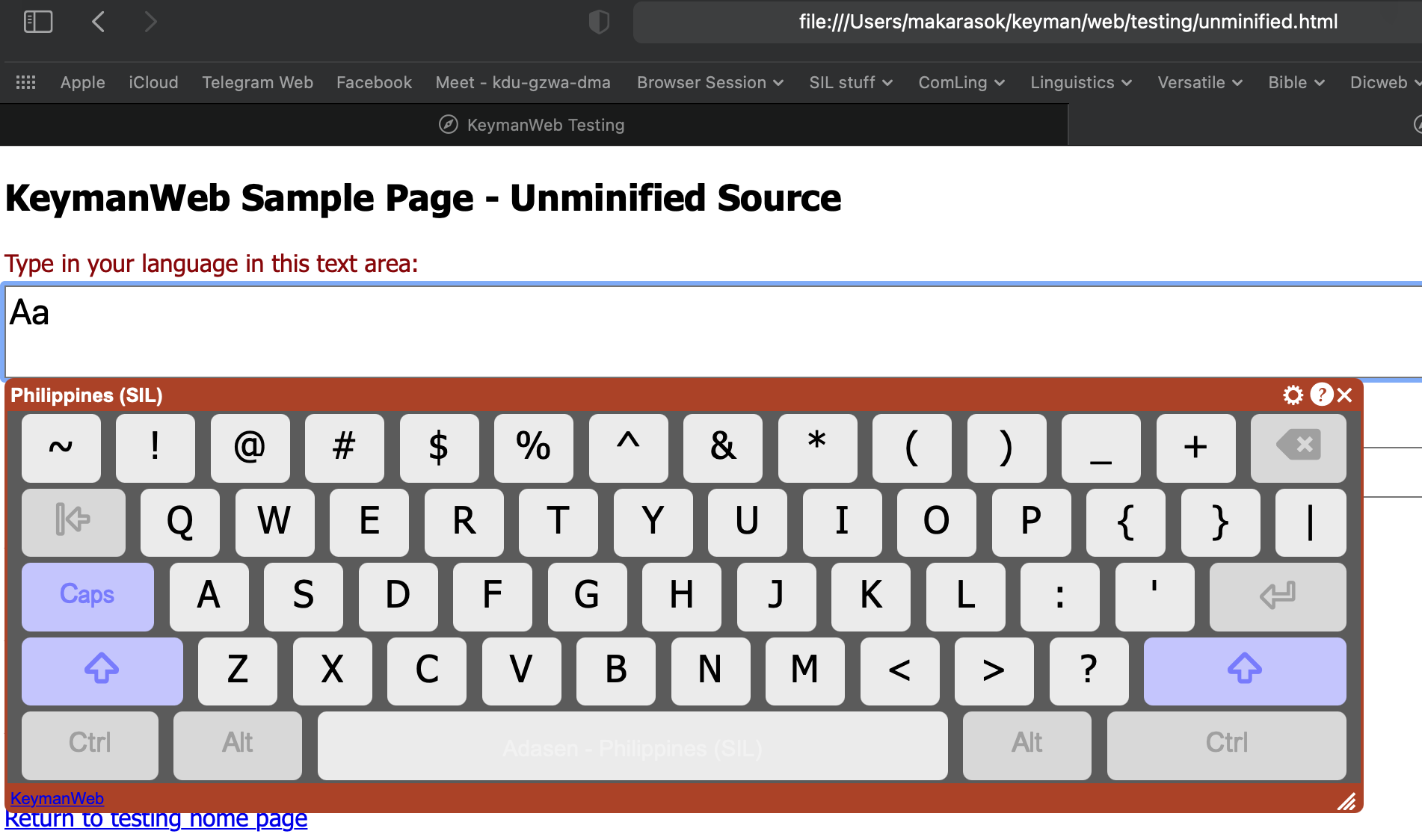 Using the "Test unminified KeymanWeb" test page: