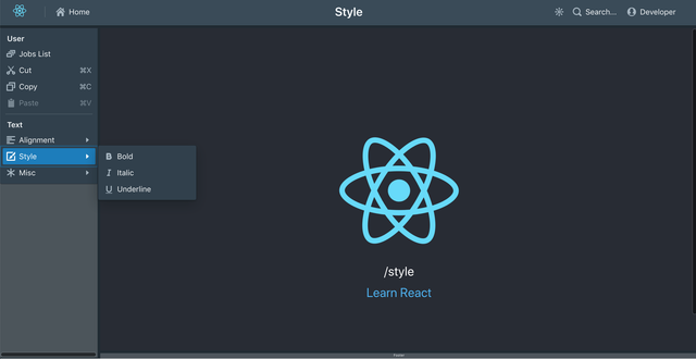 - Create React App with FIXED top nav bar, customizable side menu and main page.