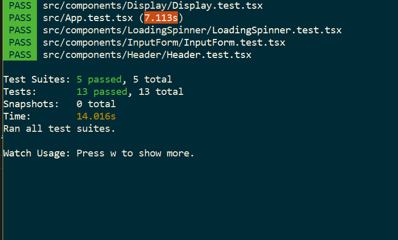 In the React app, run yarn test.