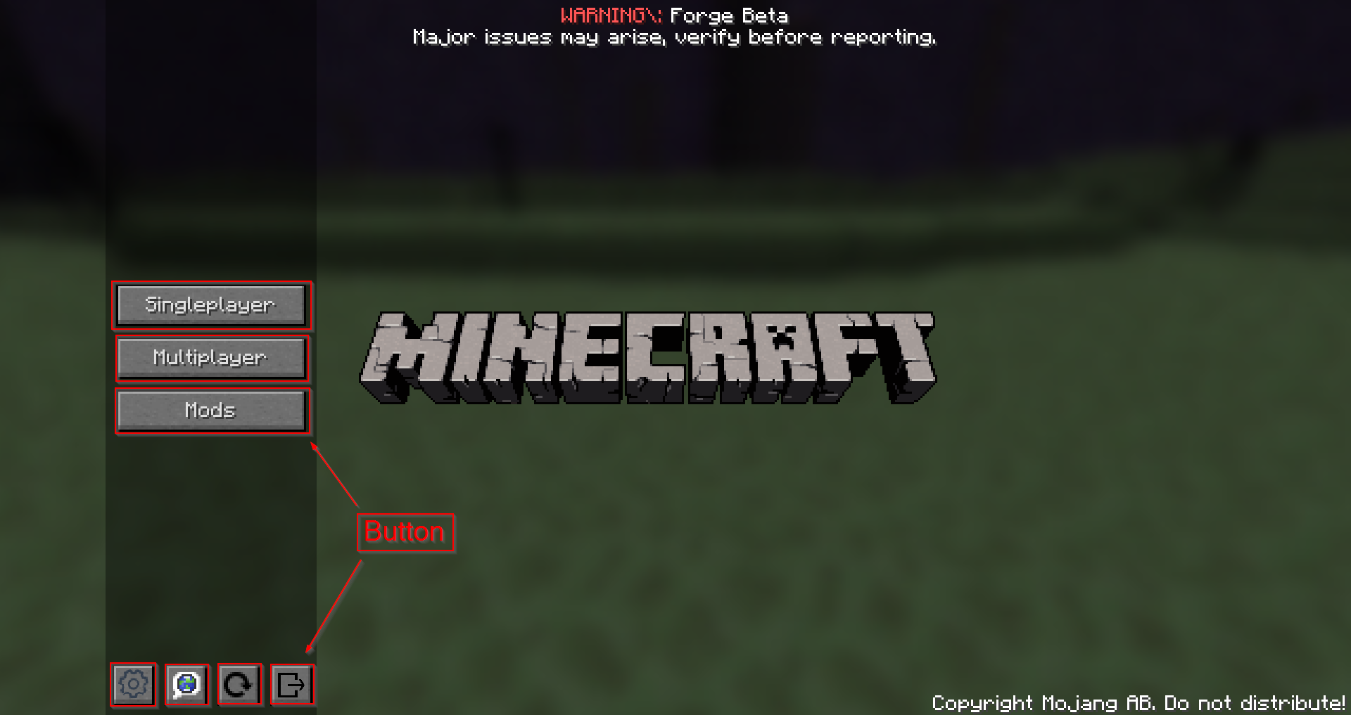 Buttons execute actions when pressed. They can open guis (custom ones as well) or for example connect to a server, open a link or load a specific world.