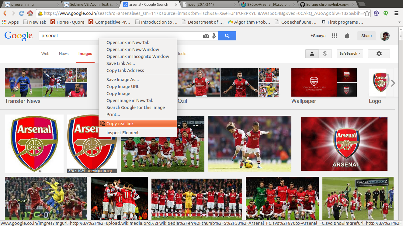 and which is so large that I can't even paste it here. Using Copy Link Address you get a google page showcasing the image rather than the actual image and the url is like http://www.google.co.in/imgres?imgurl=http%3A%2F%2Fupload.wikimedia.org%2Fwikipedia%2Fen%2Fthumb%2F5%2F53%2FArsenal_FC.svg%2F870px-Arsenal_FC.svg.png&imgrefurl=http%3A%2F%2Fen.wikipedia.org%2Fwiki%2FArsenal_F.C.&h=1024&w=870&tbnid=c8b9XuiXT08oQM%3A&zoom=1&docid=mtxyyiAZz_EG_M&ei=_LjrU_KWLtXr8AXPz4KYDw&tbm=isch&ved=0CDAQMygBMAE&iact=rc&uact=3&dur=280&page=1&start=0&ndsp=10