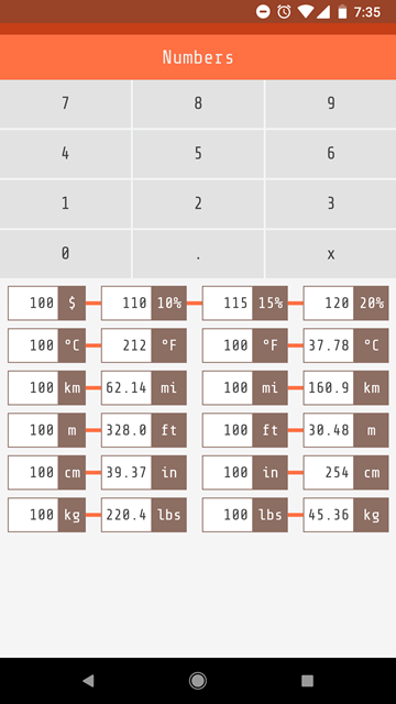 Numbers is a progressive web app that calculates and converts numbers as you type. Calculate tips and convert temperatures, distances, and weights instantly.