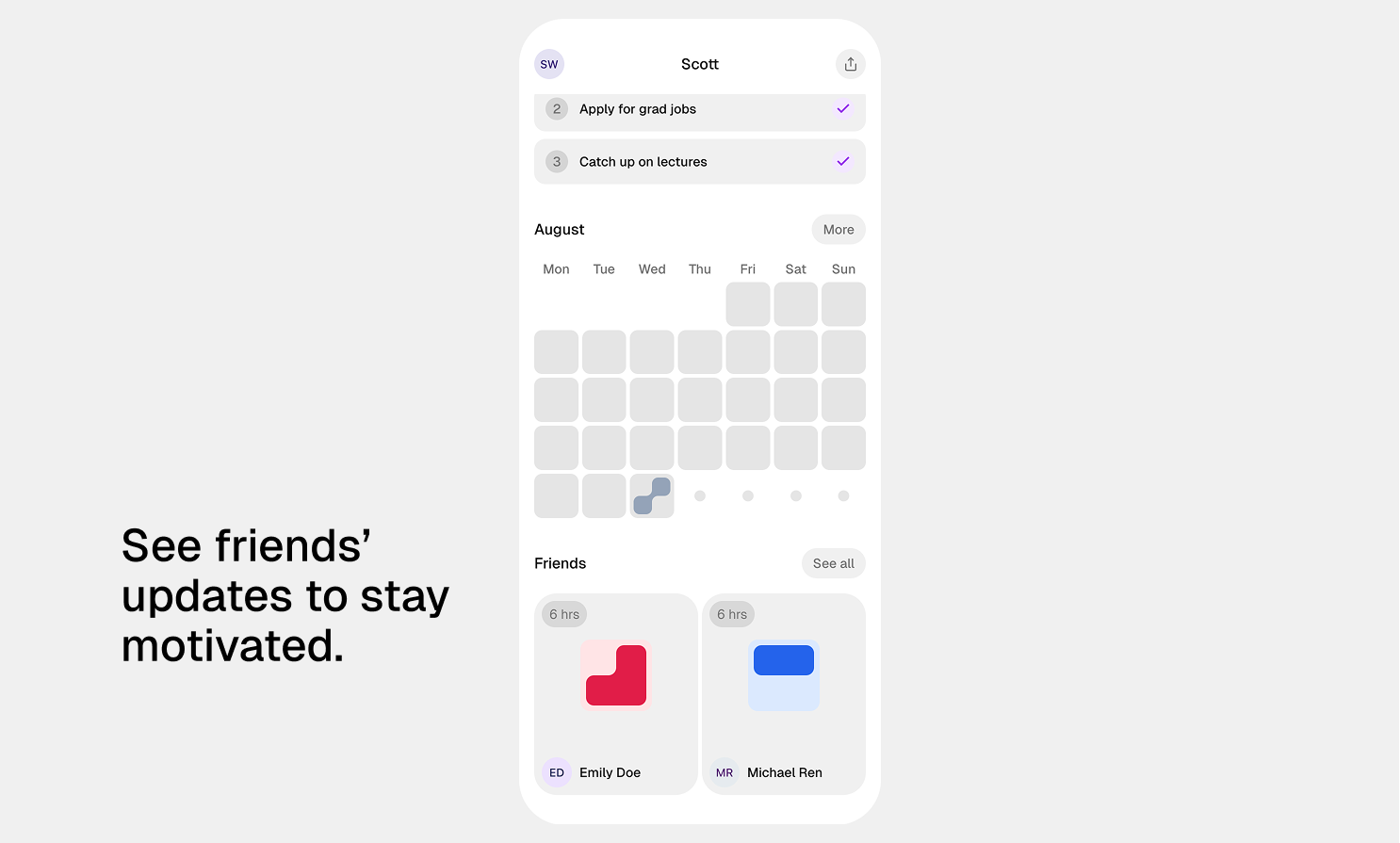 • See friends' progress.