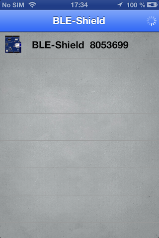 The iPhone App was part of the BLE-Shield Kickstarter campaign https://www.kickstarter.com/projects/rowdyrobot/arduino-ble-shield-connecting-the-ios-and-the-ardu and only supports the BLE-Shield v1.0.0 The BLE-Shield app provides access to the BLE-Shield Service and their characteristics. It's user interface is implemented like a chat application. The chart partners are the BLE-Shield and the iPhone, illustrated by small icons.