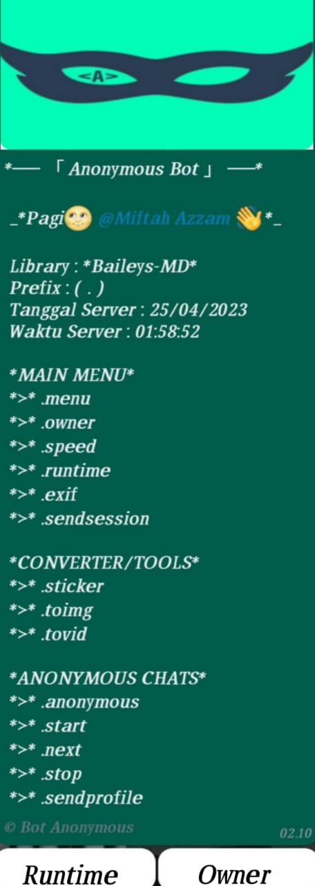 "botName": "Anonymous Bot", // Nama Bot