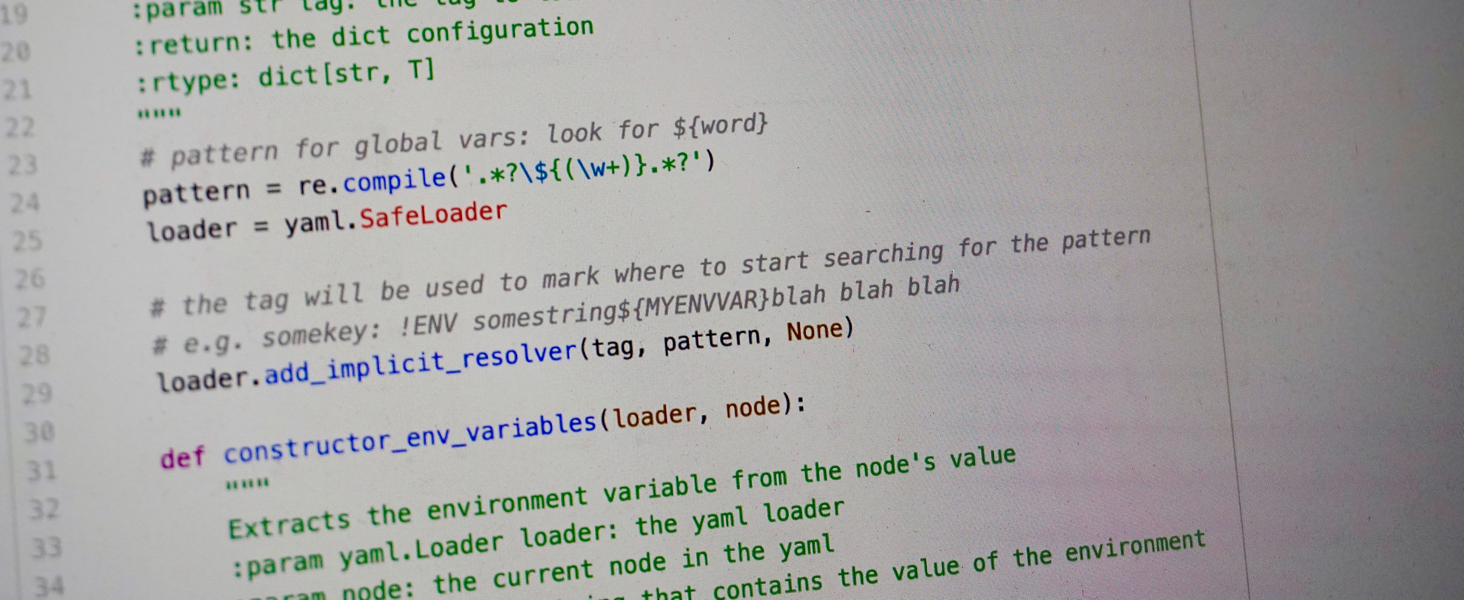 For PyYAML to be able to resolve environment variables, we need three main things: