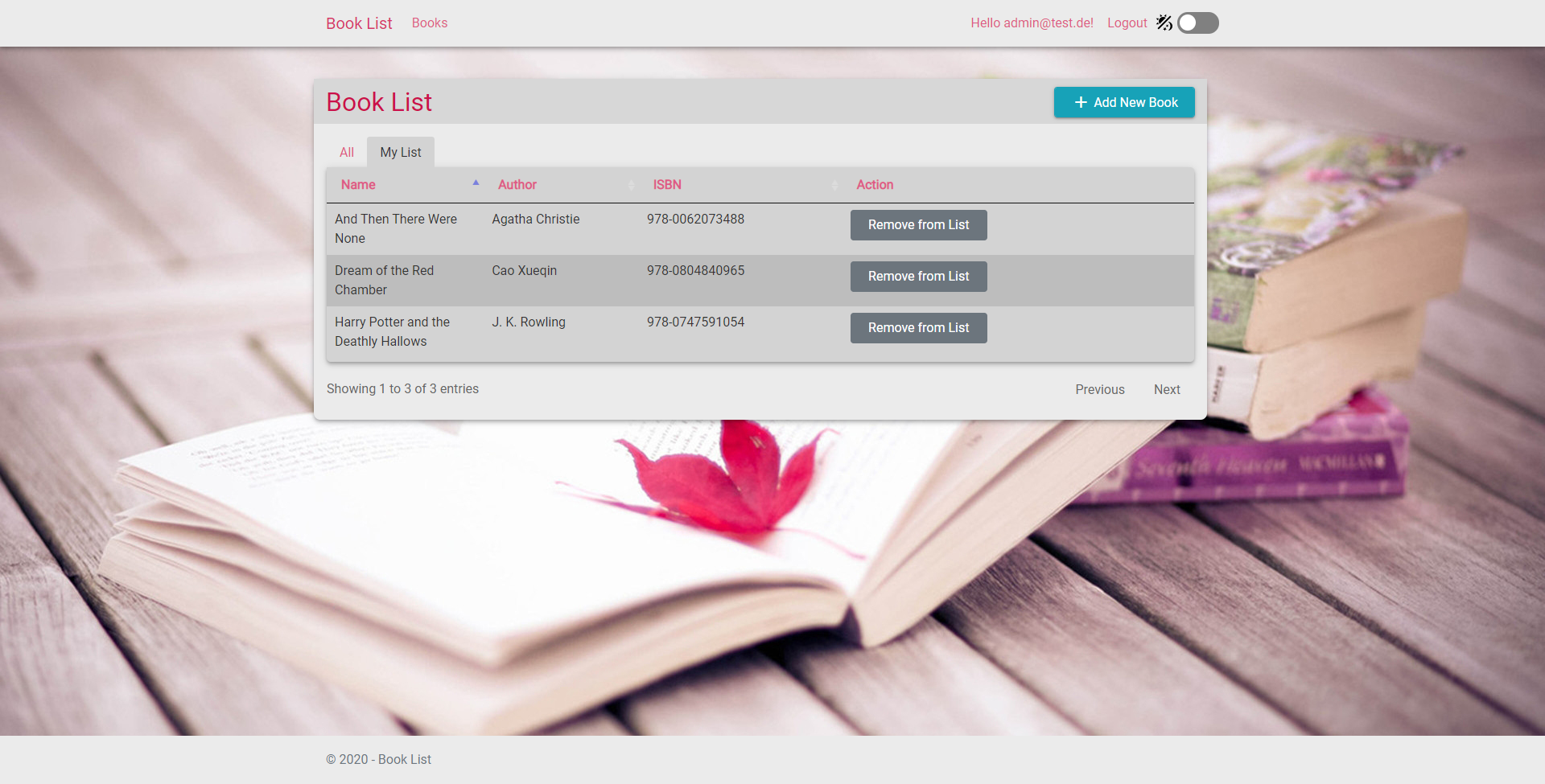 Simple CRUD .Net Core App with light and dark theme