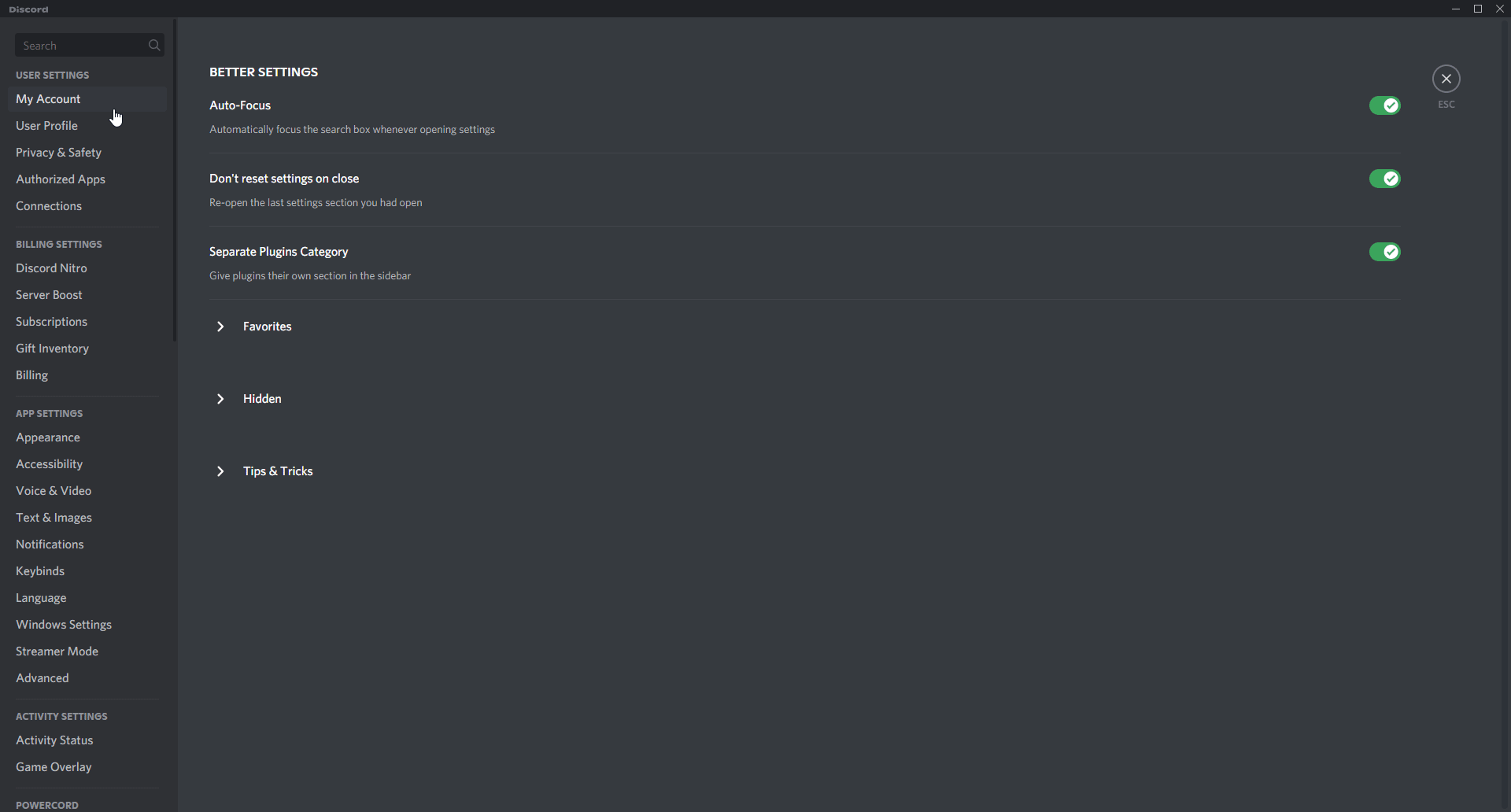 Prevent discord from resetting what setting you were on (server settings not supported)