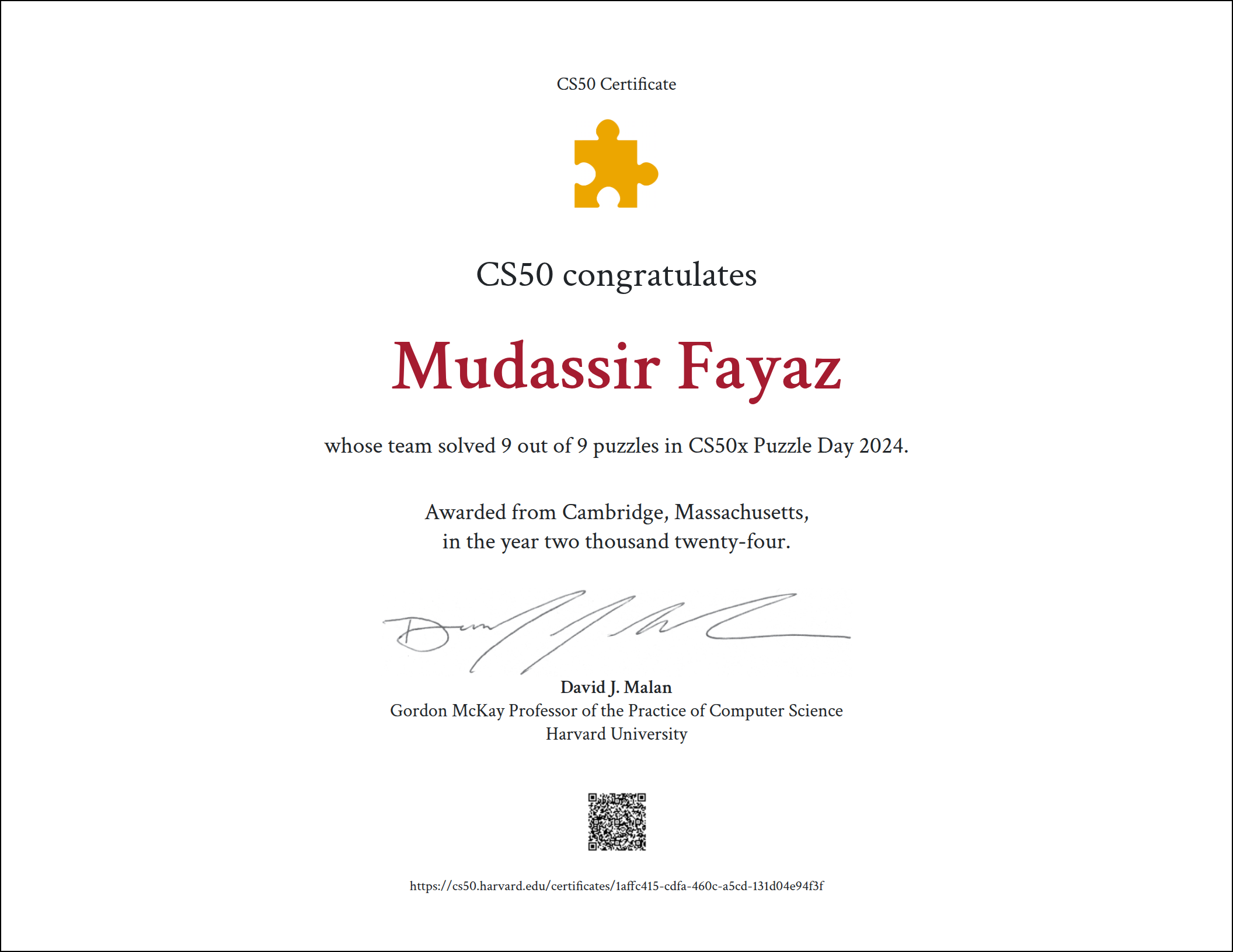 - ๐งฉ Won Harvard CS50x Puzzle Day by Solving 9 out 9 puzzles [Certificate]:
