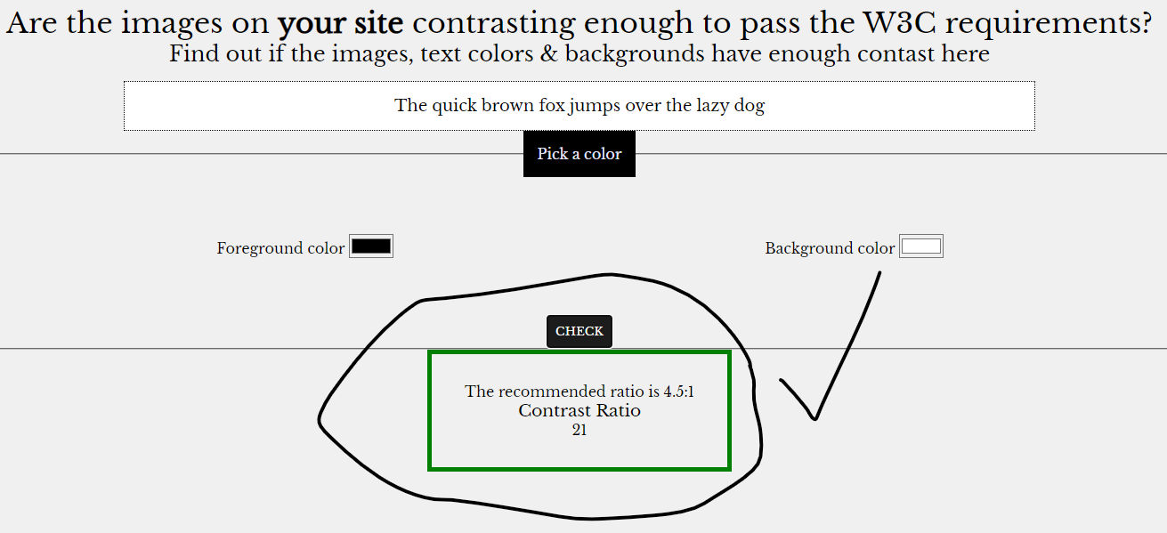 - Click on check to see if the color combination is the recommended one