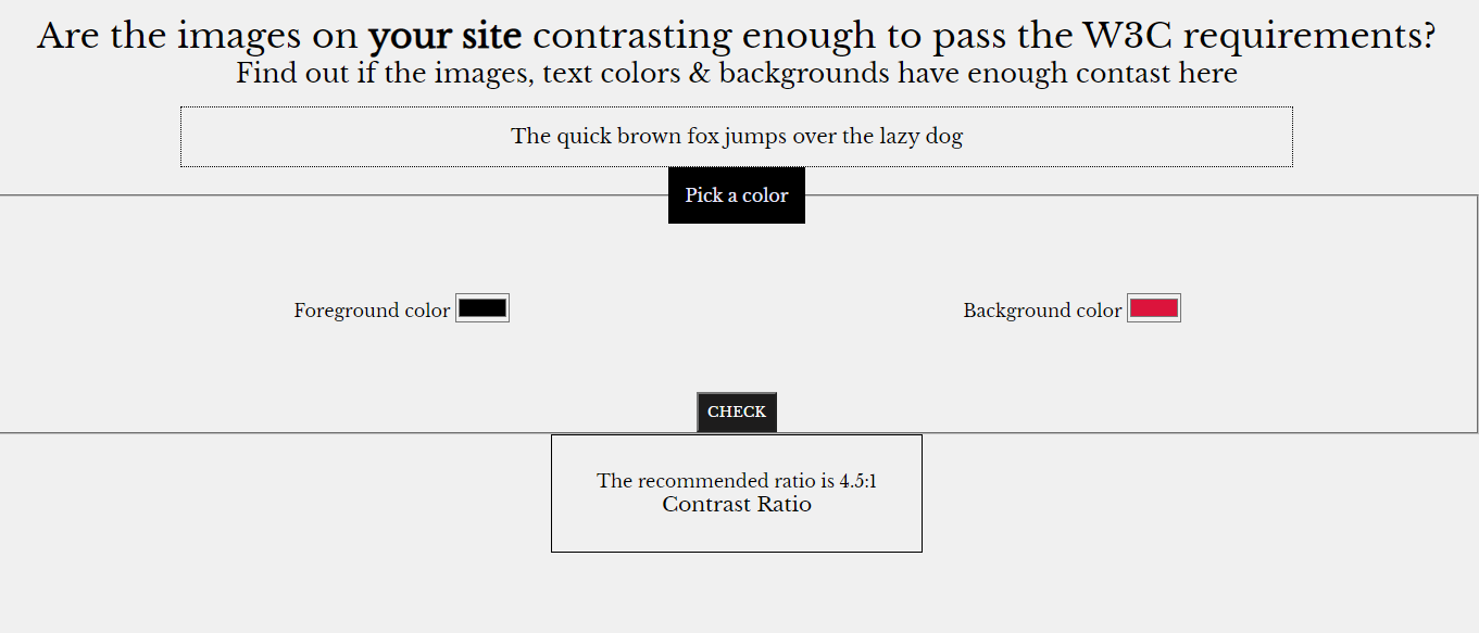 - Input your foreground and background color to check if they meet best practices. Find out what is foreground and background here