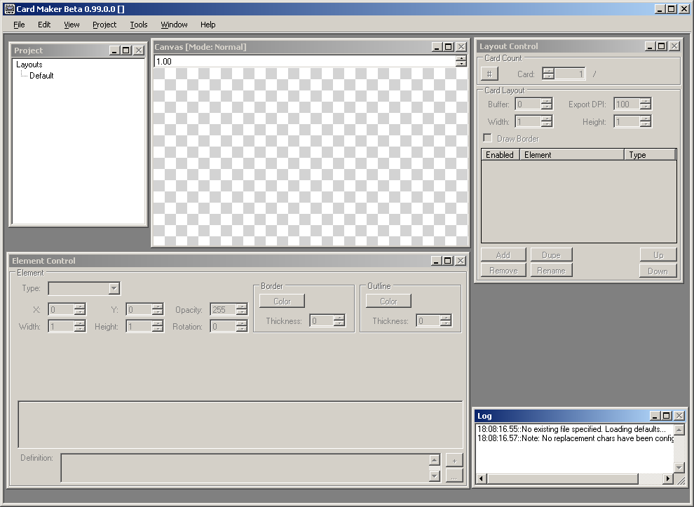 Launch the Application (CardMaker.exe) -- It should look something like this when started: