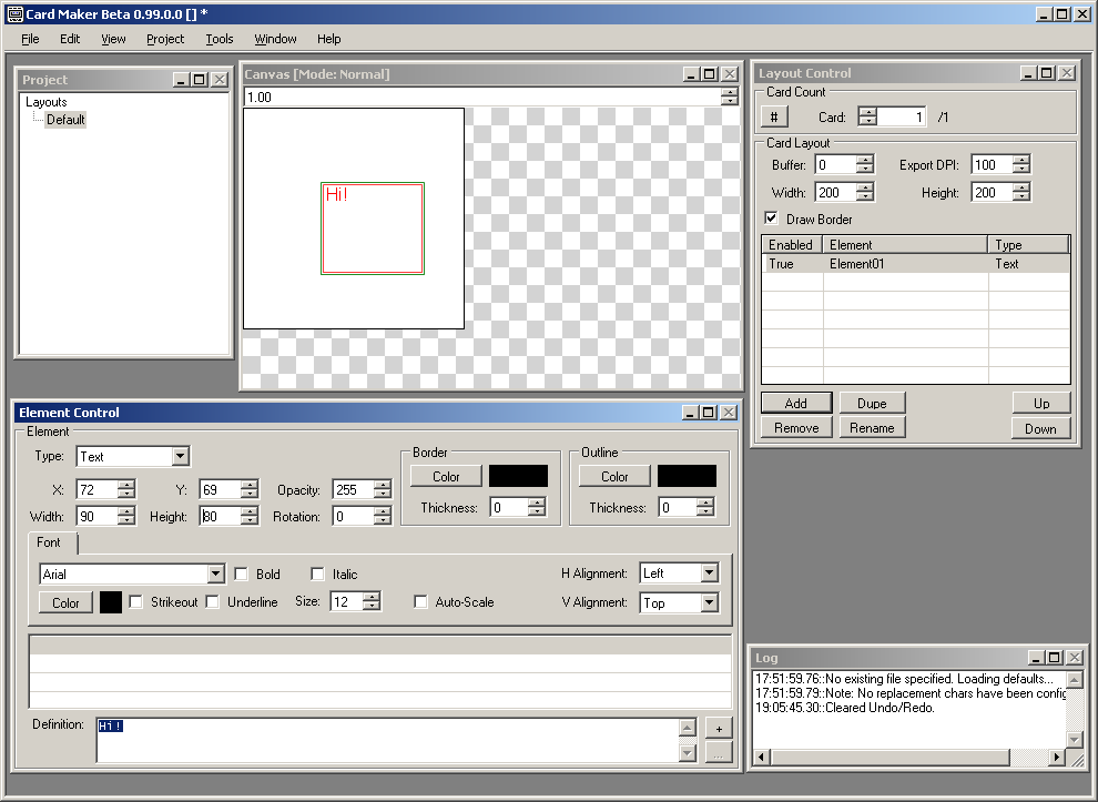 Every new project contains the Default layout. A layout is a container for the various elements of a card.