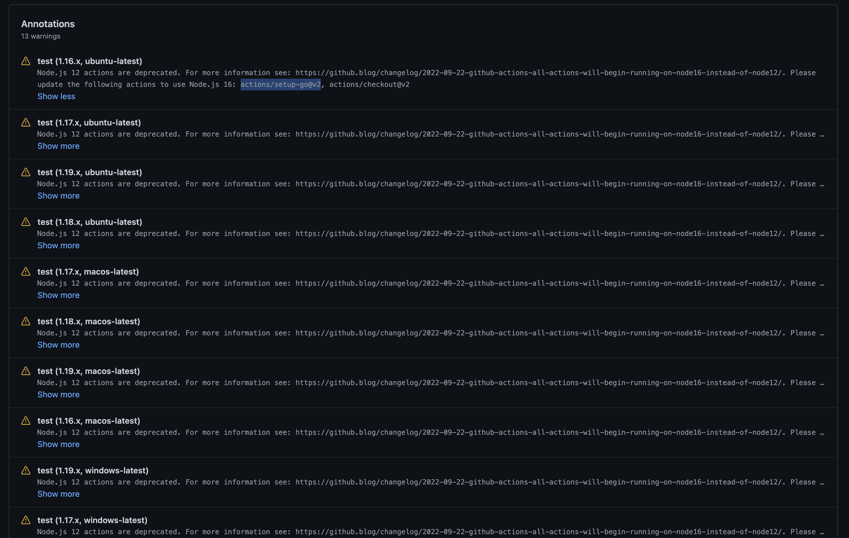 …arnings: "Node.js 12 actions are deprecated. For more information see: https://github.blog/changelog/2022-09-22-github-actions-all-actions-will-begin-running-on-node16-instead-of-node12/. Please update the following actions to use Node.js 16: actions/setup-go@v2, actions/checkout@v2" remove former empty line to trigger Github Action