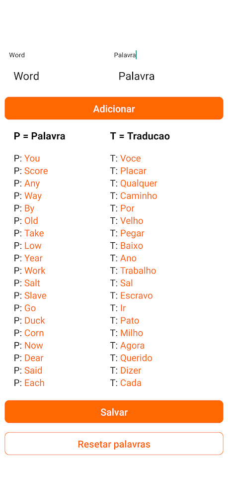 Jogo de Ingles react-native Aplicativo feito em react-native para tentar praticar algumas coisas basicas no react native ideia totalmente autoral. Tela inicial Tela de cadastrar palavras Tela do jogo