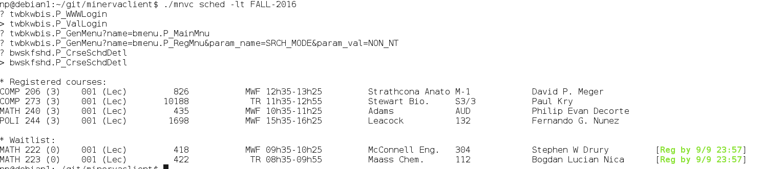 minervac sched -t 2016SUMMER -V > ~/summer-schedule.html- Edit