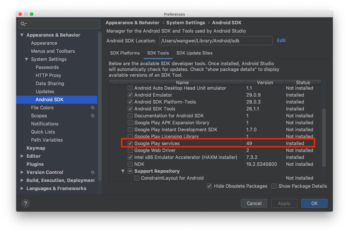 因此記得在 Android studio 中安裝 Google Play services 不然是無法取得地圖的任何資訊喔!!!