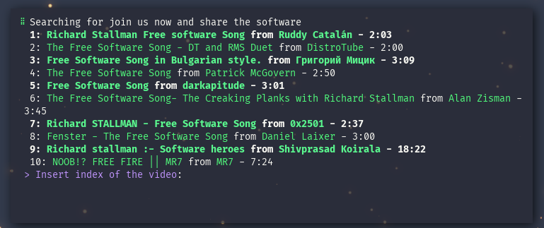play(that will open a dmenu prompt asking for the search query). - Running