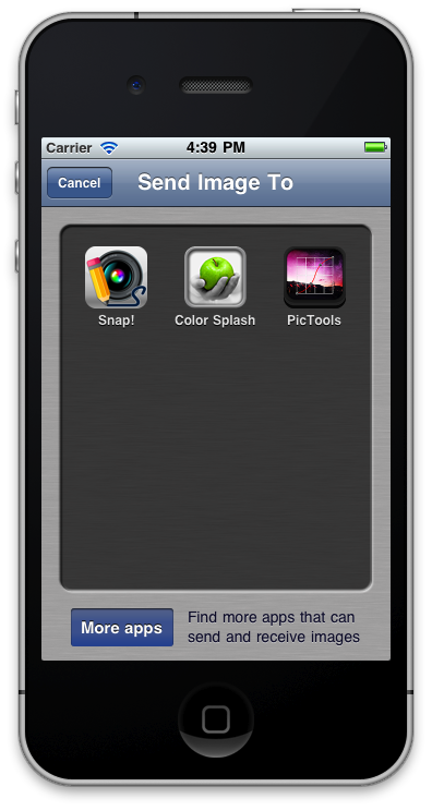 The PALSendToController class not only displays the supported apps installed on the user's device but also takes care of actually invoking the selected app and passing along the current image.