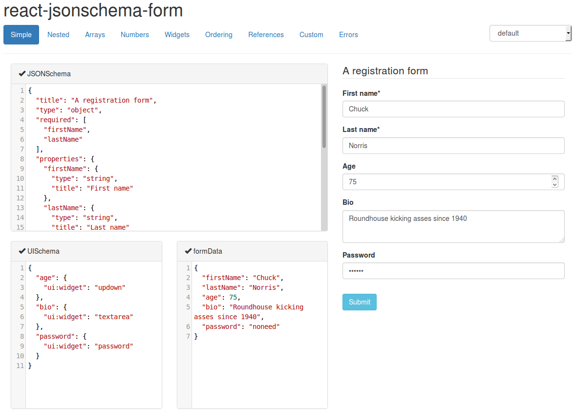A simple React component capable of building HTML forms out of a JSON schema and using Bootstrap semantics by default.