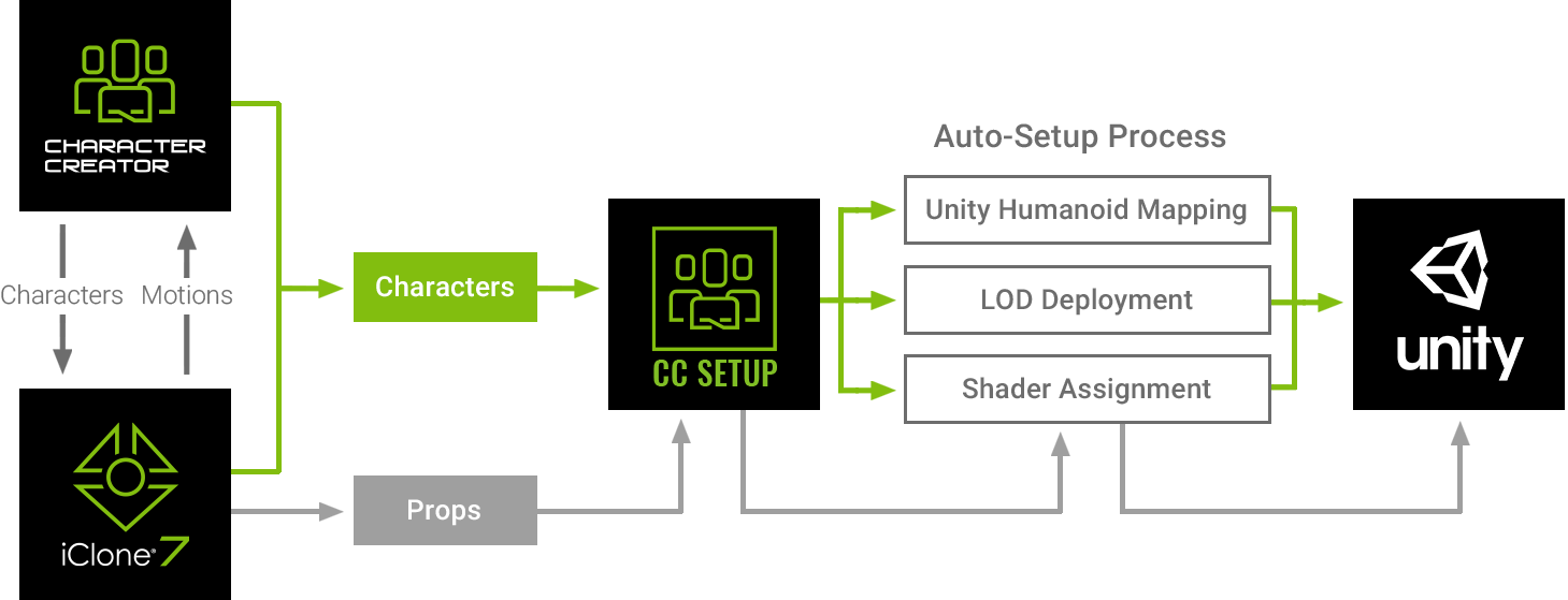 To save time in the complicated and routine works of import, Reallusion offers tools to automate the process of shader assignment and characterization for Unity.