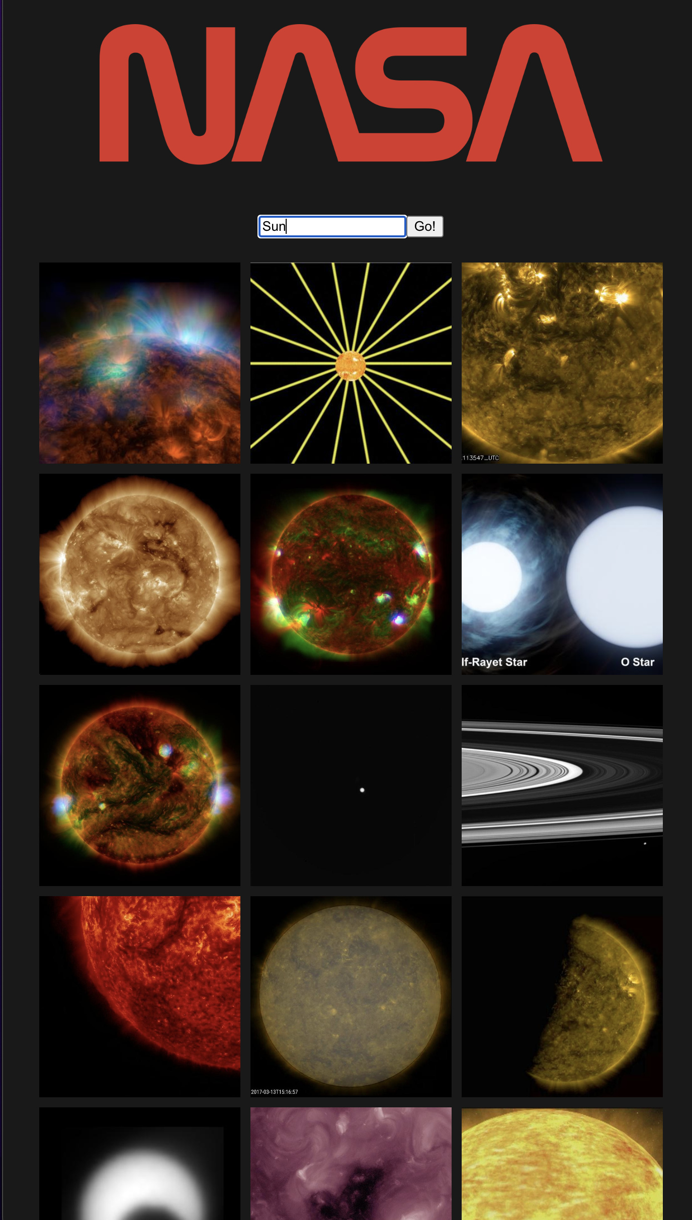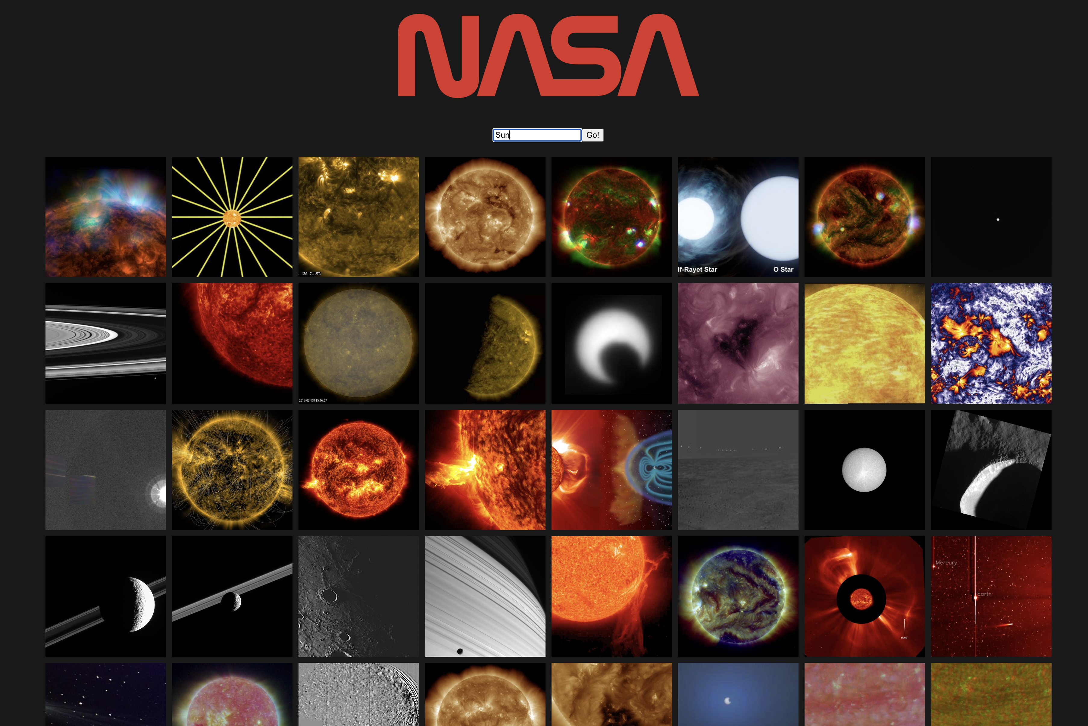 React NASA API Technical Test This technical test required building a responsive web app using React, displaying information fetched from an API. Screenshots Desktop View Mobile View Built with: React and vanilla CSS Testing used: Jest and React Testing Library Packages used: Axios How to run this app locally Clone the repository. Navigate to the project directory. Run npm install to install the necessary dependencies. Run npm start to start the development server. Open http://localhost:3000 in your browser. Things I would do next time Look into infinite scroll for large data sets Add a 'surprise me' feature to return a random picture Add more visuals cues to enhance UX