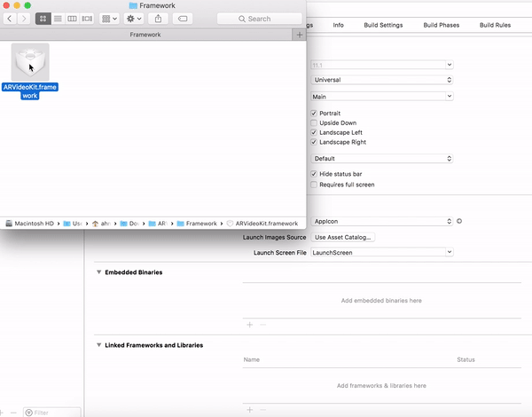 ARVideoKit.frameworkfile path as anInput File. In my case, I have it in a folder namedFrameworksinside my project folder