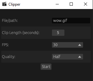 Press 'Start' to start recording. Clipper holds the most recent x-amount of seconds of screen data and converts it to a gif when you click 'Stop'