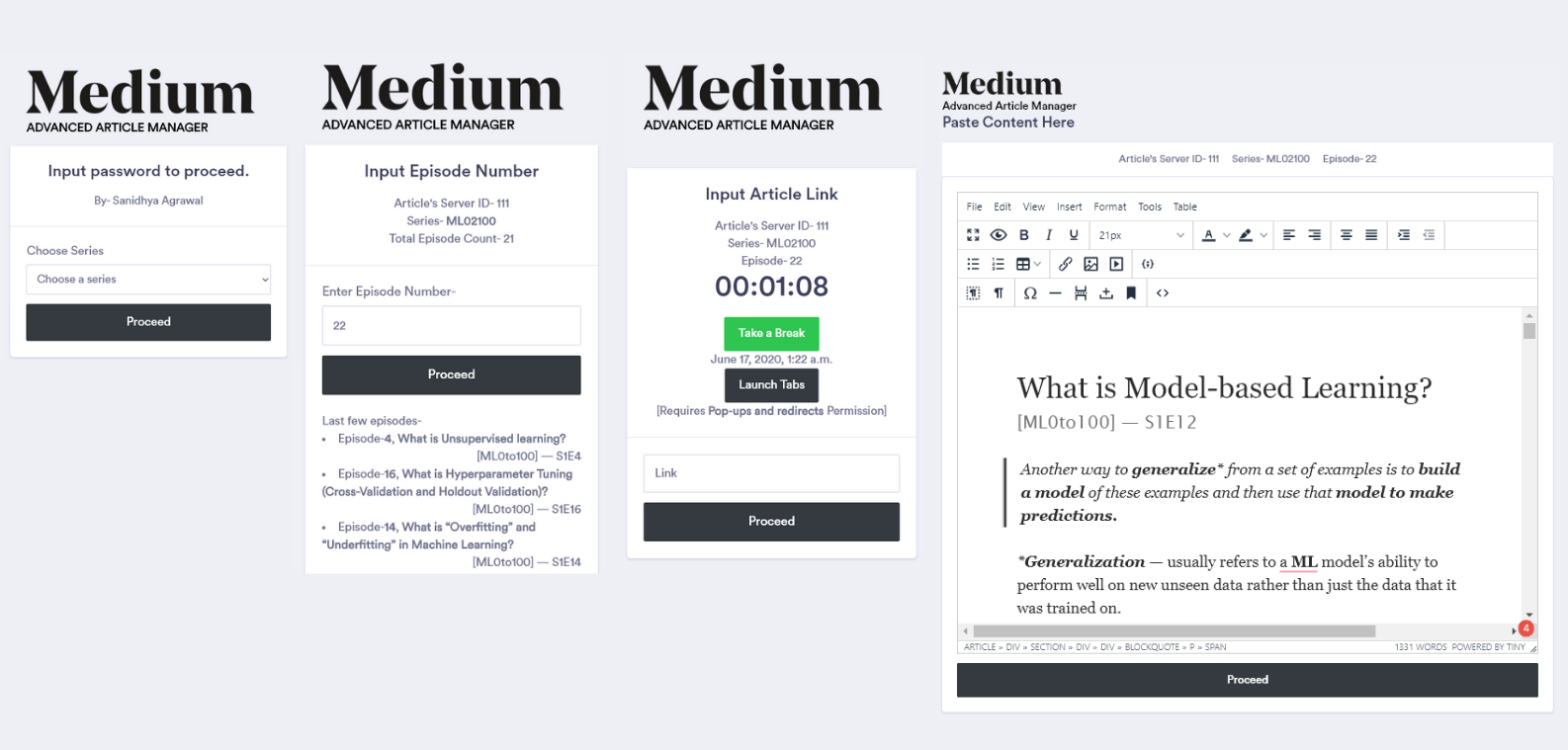 I started writing articles on various Machine Learning topics as a part of my learning. To maintain consistency and organize my series-episode structure of writing, I developed an advanced medium article manager.