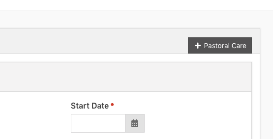 In the "Add Hospitalization/Resident" areas, there is a button in the top right that says "+ Pastoral Care." This doesn't seem to be related directly to pastoral care at all, it's just a "New Family" box. Recommend changing "+ Pastoral Care" to "+ New Person."
