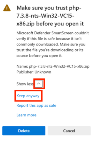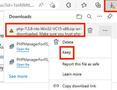 8.) From the Installation Files, download PHP 7.3.8 (php-7.3.88-nts-Win32-VC15-x866.zip) and unzip the contents into C:\PHP