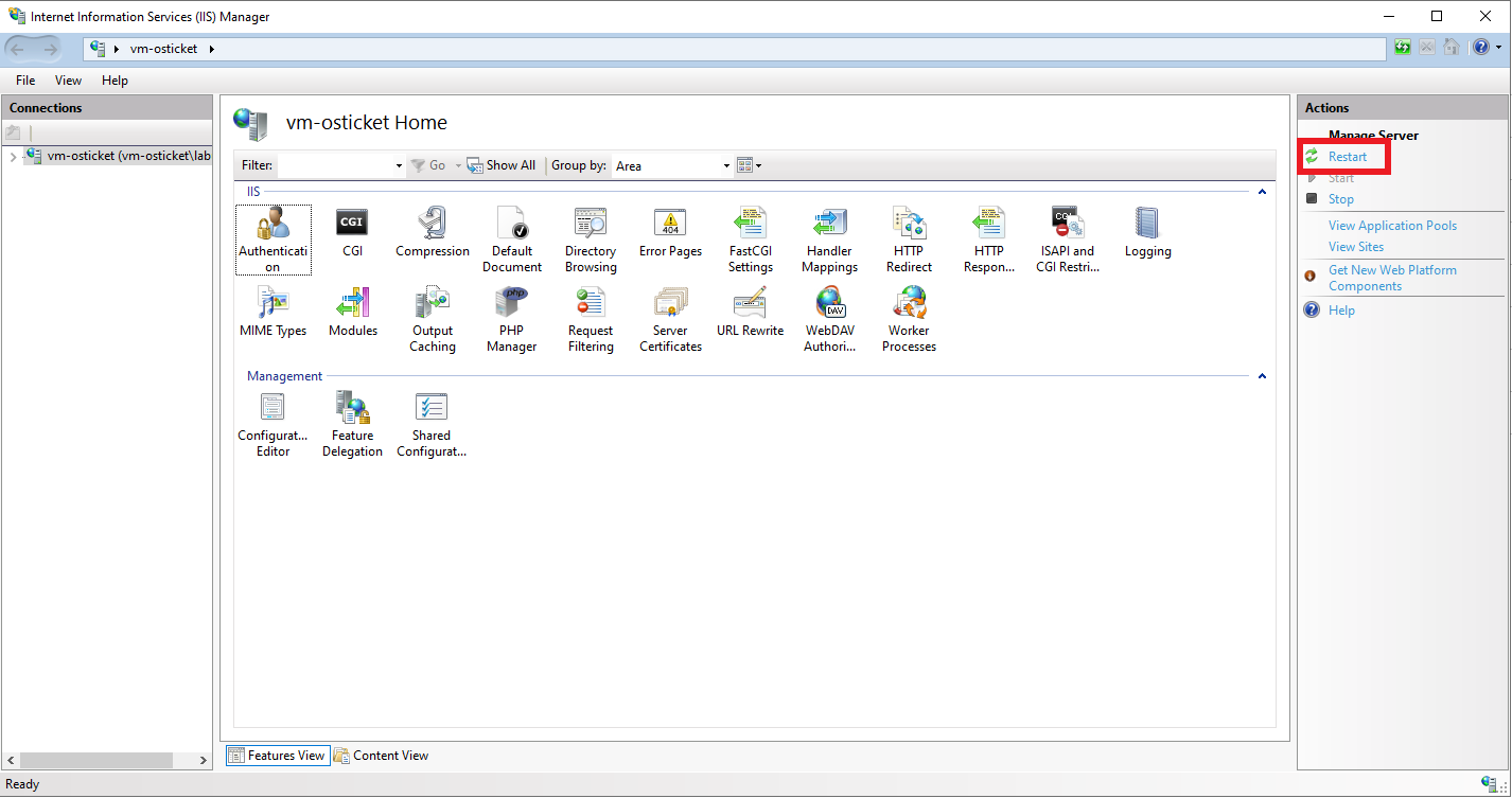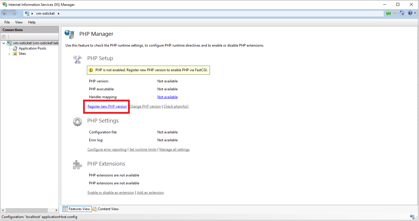 12.) We will now want to register PHP from within IIS. Click on PHP Manager