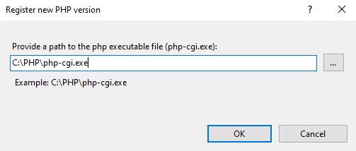 You will want to provide a path to the php executable file (php-cgi.exe)). Go to C Drive -> PHP -> click on php-cgi file.