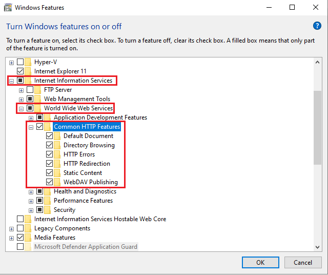 4.) You will want to install / enable IIS in Windows with CGI and Common HTTP Features