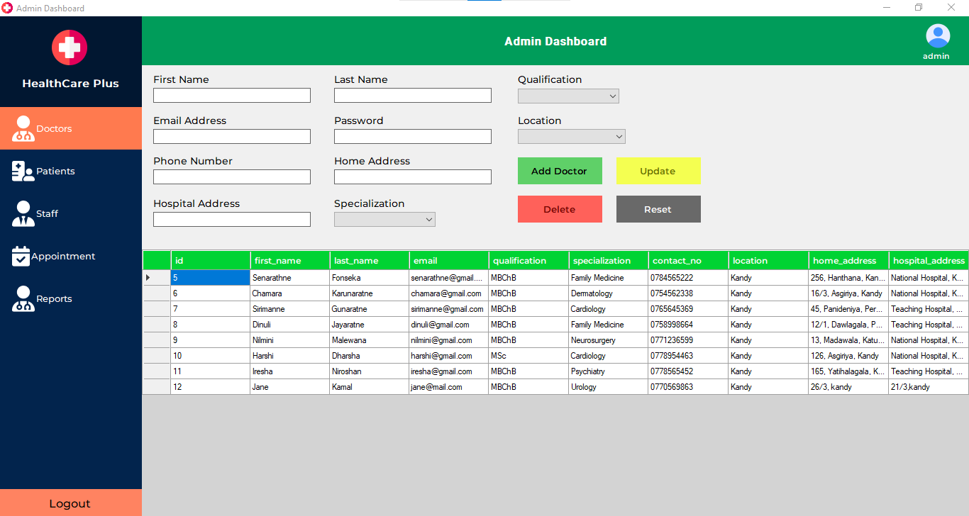 email: admin@healthcareplus.com password: j@lmd45!k