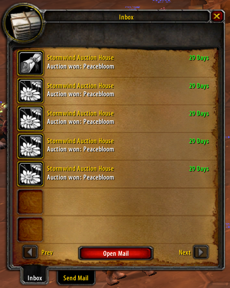 <Right Click> on inbox items to loot the gold, loot the item and destroy the letter, in that order, if any.