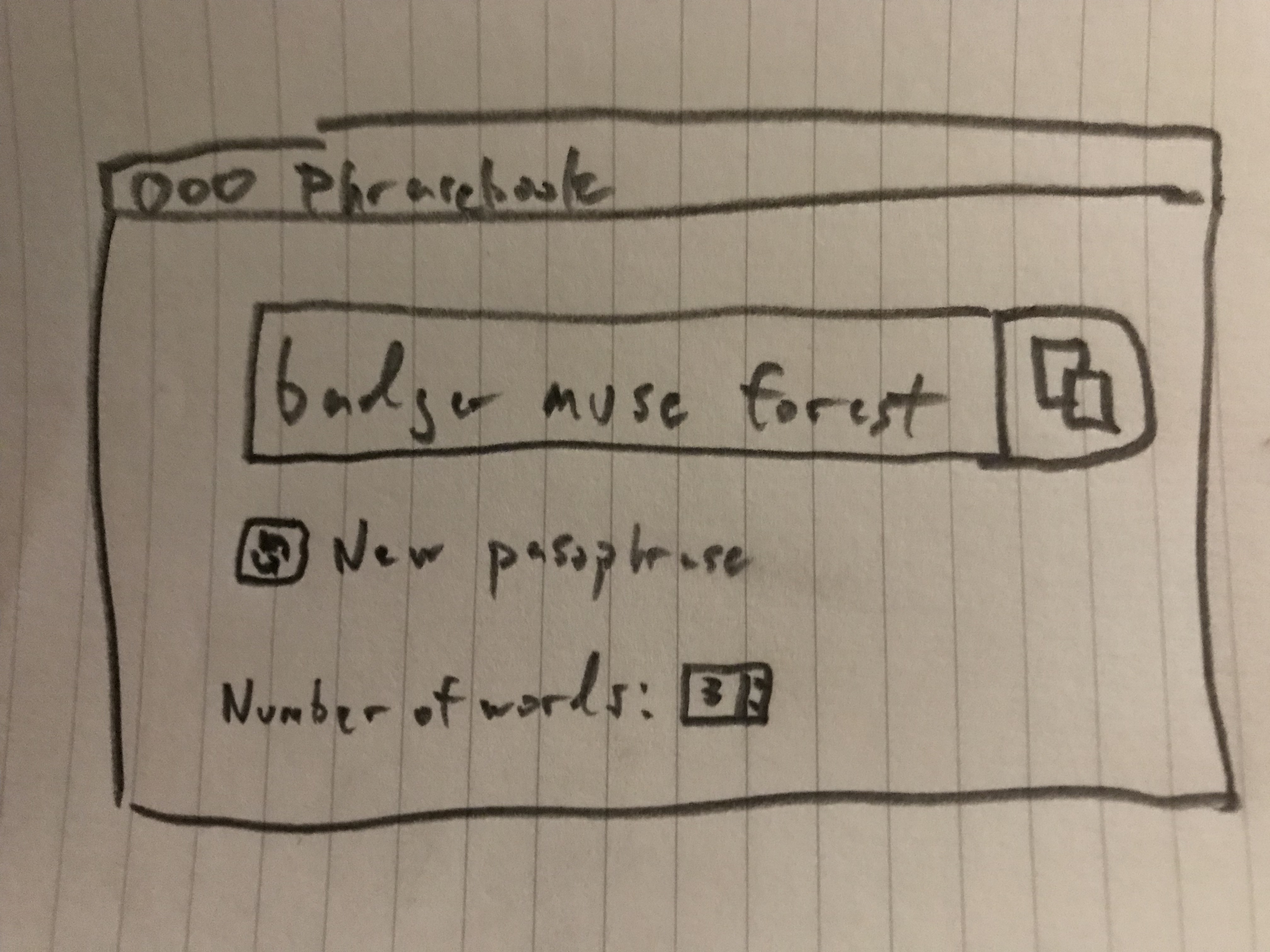- The new passphrase button is a kind of destructive action (current passphrase goes away) and should be far enough away from the copy button that it won't be accidentally clicked on while copying the current passphrase. Like the copy button, it should be a button in the UI to make sure people know it is clickable.
