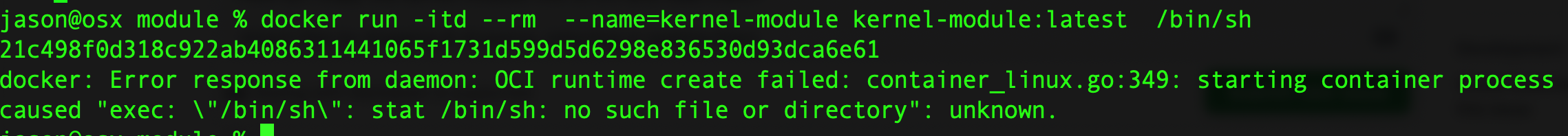 I create a container with command "/bin/sh" from kernel-module image, but it prompts that there is no /bin/sh command: