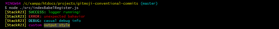 npx @stackr23/logger "{yellow.bold my outout string}"