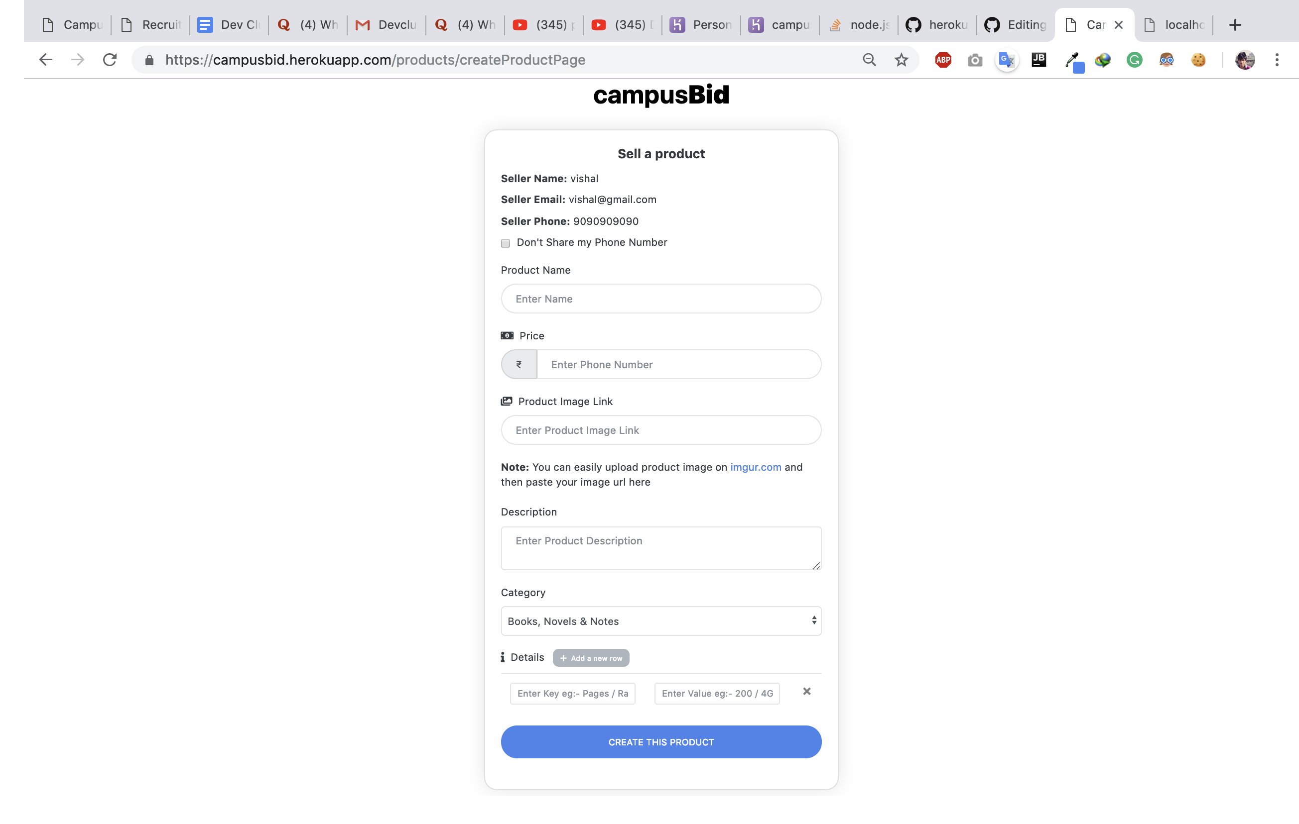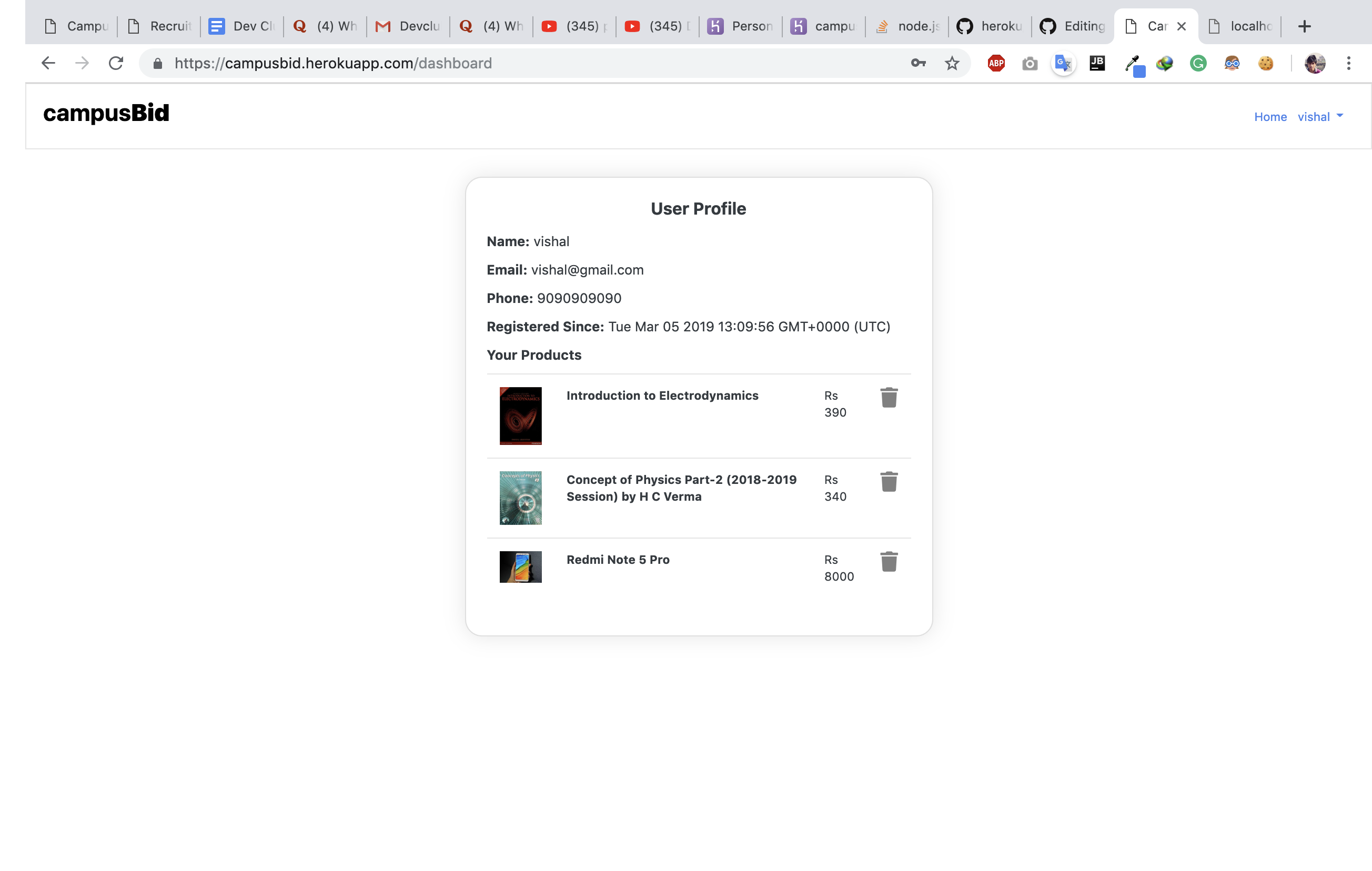 $ git clone 'https://github.com/tmibvishal/campusBid''